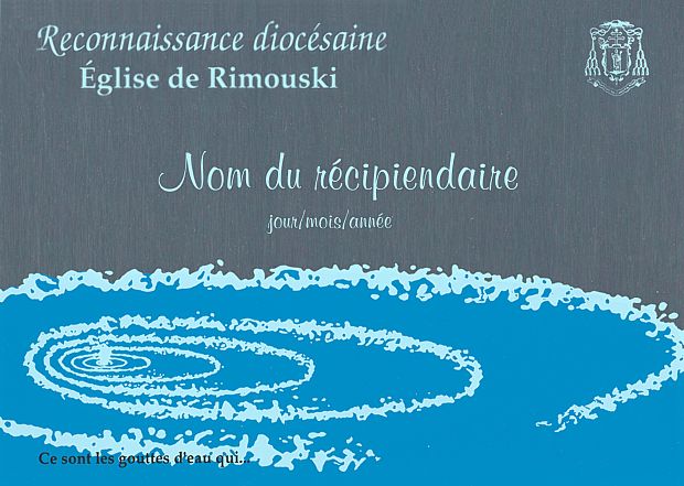 Institué en 1992 par S. E. Mgr Gilles Ouellet, à l'occasion du 125e anniversaire de diocèse de Rimouski, le prix de la Reconnaissance diocésaine «permet au Peuple de Dieu rassemblé à Rimouski d'exprimer sa reconnaissance pour les services qu'il reçoit de ses membres les plus engagés, prêtres, religieuses, religieux ou laïques» (Mandement du 7 juin 1992).