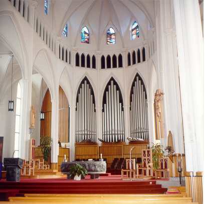 Entre 1990 et 2001, ont a progressivement ajouté les neuf vitraux du haut-choeur,