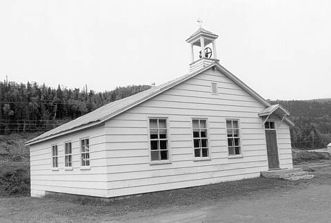 CHAPELLE DE SAINT-ROBERT D'ASSEMETQUAGAN, ROUTHIERVILLE. Cette chapelle était située sur le territoire de la paroisse de Sainte-Florence. Premier desservant : Charles-Ernest Trudel. Le premier nom de cette mission, Assemetquagan, est un mot amérindien qui veut dire : "Cours d'eau que l'on découvre après une courbe". Première messe en 1878. Mission en 1908. La première chapelle de Routhierville a été construite en 1909 et a servi de chapelle-école jusqu'à sa conversion en résidence privée au milieu des années 1940. Construite en 1942 ou 1943, la deuxième chapelle (celle de la photo) a été utilisée comme chapelle-école jusqu'au milieu des années 1960. Par la suite, et ce, jusqu'à la fermeture de la mission en 1989 (la chapelle est alors devenue une propriété privée), elle a servi exclusivement comme chapelle. La cloche de cette chapelle provenait d'une ancienne locomotive à vapeur de la compagnie des chemins de fer du Canadien National. Les bancs de la chapelle étaient ceux de la sacristie de l'ancienne église d'Amqui.