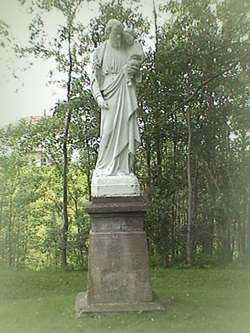 Au fond du parc, une statue de saint