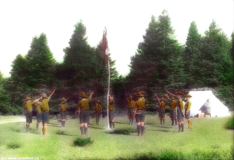 1934-07-24_17c 23-31 juillet 1934. Camp scout à l'île aux Amours (Bic). La levée du drapeau. |