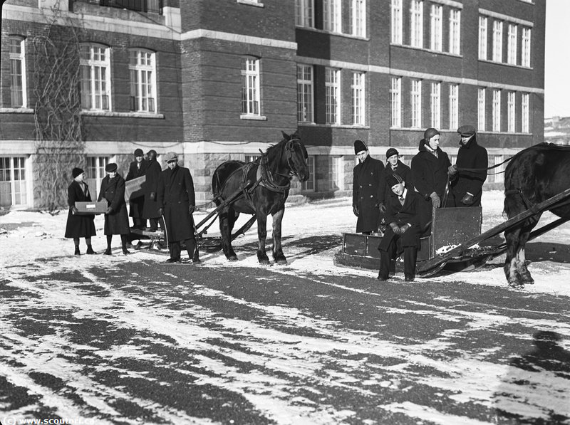 1934-12-23_03 23 décembre 1934. Midi. Les scouts distribuent les jouets qu'ils ont réparés aux petits pauvres de la ville de Rimouski. |