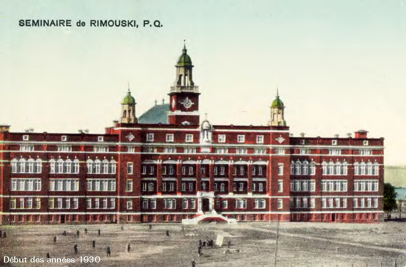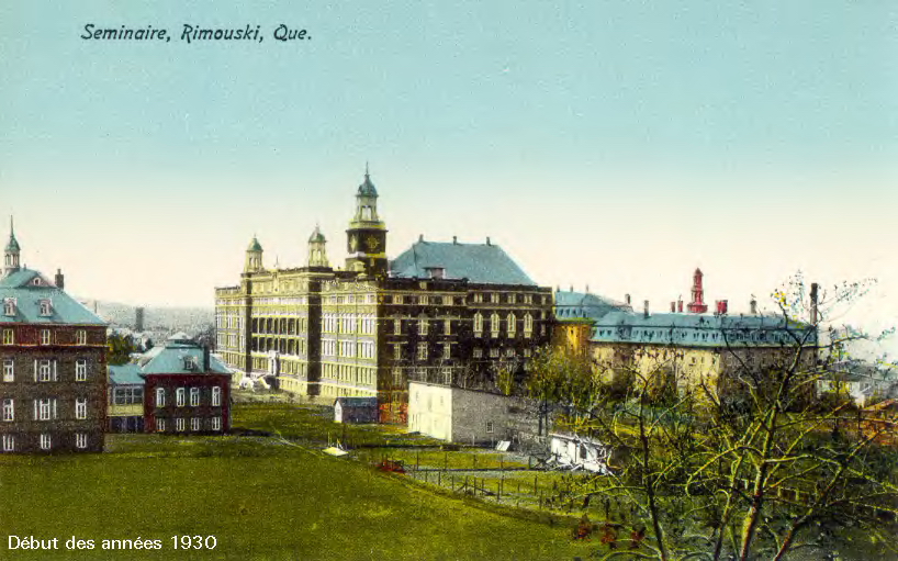 Le Séminaire de Rimouski au début des années 1930. Reproduction de deux cartes postales tirées des archives du Diocèse de Rimouski. |