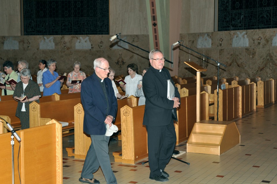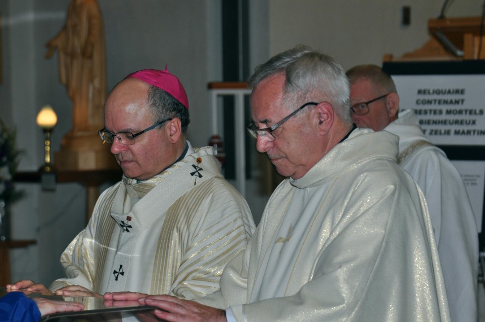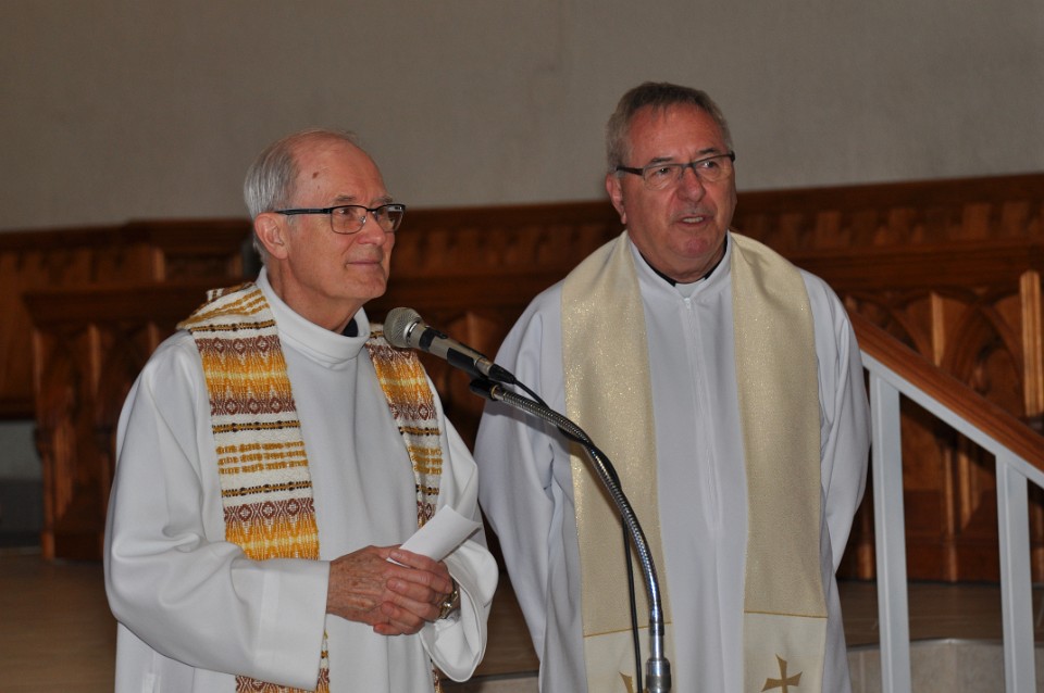 L'abbé Gérald Roy, recteur du sanctuaire Sainte-Anne et l'abbé Réjean Lessard, recteur du sanctuaire Sainte-Thérèse